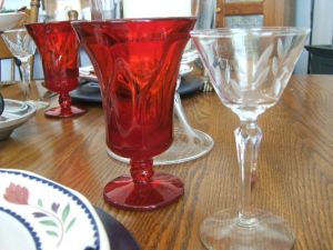 The cordial/wine glass remained and the blue goblet was switched for our star, the ruby red goblet.