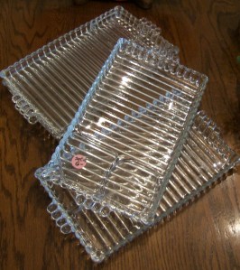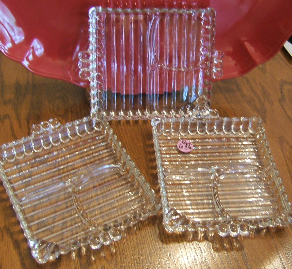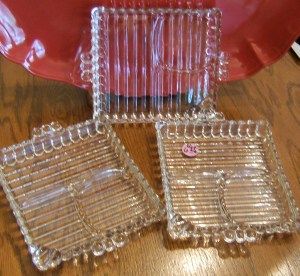 I found four more of these vintage rectangular snack trays with matching cups to add to my collection. I paid $6.