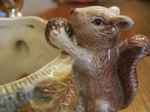Wow, wonderful finds. I don’t know which I like better. That little squirrel certainly is cute! The glass trays and cups are wonderful.