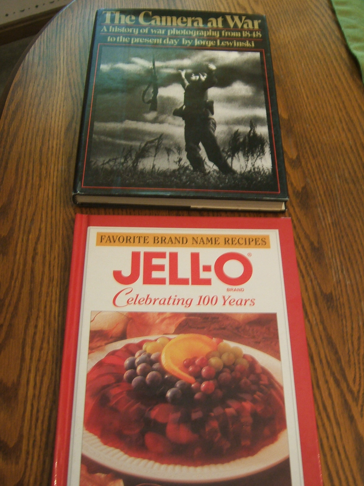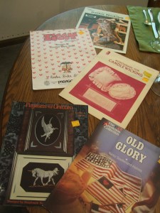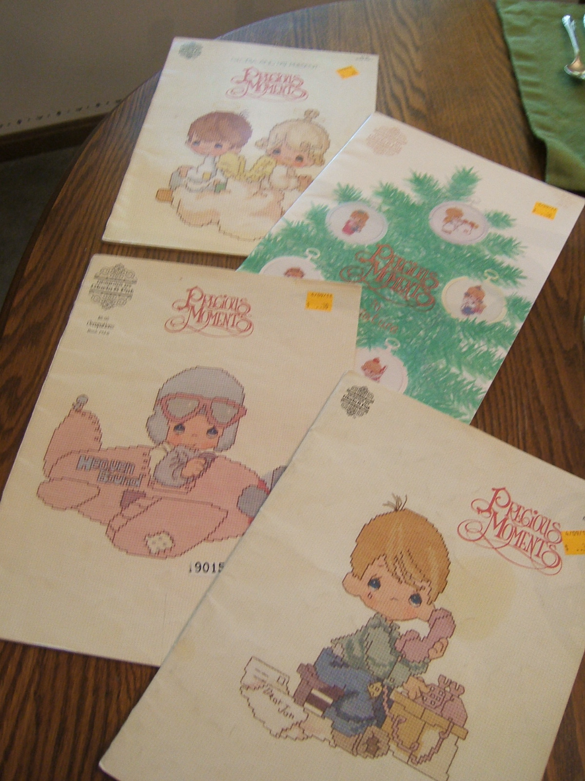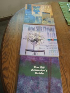 This was a banner week at the thrift shops for finding dishes. I had the opportunity to visit several thrifts I haven’t been to in a while. At the first thrift, I found some books, pattern books, and two bags of Colonial Blue candles.