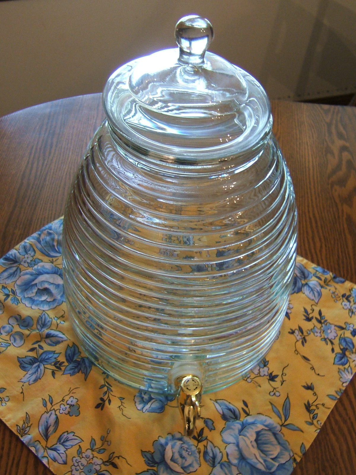 My sweet daughter remembered that I had admired the totally adorable bee skep beverage dispensers that were showing up in blogs last year. She surprised me with a Mother’s Day gift of this very same item. I am tickled pink and all abuzz with this honey of a gift. I can’t wait to feature it in an upcoming tablescape.