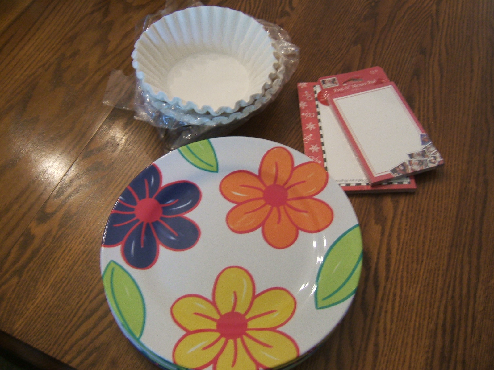 Most of the sales I attended this past week were held by organizations. We first stopped by a local church sale where I found some bright melamine plates that will be perfect to use for dining on the deck, Christmas sticky notes and stationery in unopened packages, and two opened coffee filter packages. All for $5 which is a little higher than I would have paid, but it was a benefit for the local church, so I went with it.