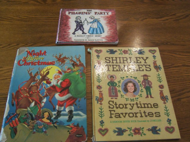 They were well-loved and well-read as you can see. I loved the illustrations in the Night Before Christmas and in the Shirley Temple book. The Pilgrims Party has interesting line drawings. I think I will make back my 30 cents if I decide to resell any of these, don’t you?