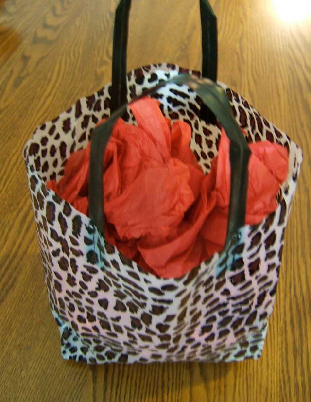When we were done monkey-ing around, we headed to do some serious errands. We stopped by one of the coolest shops around so that I could pick out some new glasses. My eyes are just not lovin’ contacts like they used to. This shop has fabulous jewelry, purses, totes, and all kinds of wonderfulness. It was hard to stay focused on the task at hand with all the temptations around. The owner is also a dish lover and having read my blog had a special gift for me, presented in the shop’s signature cool gift bags.