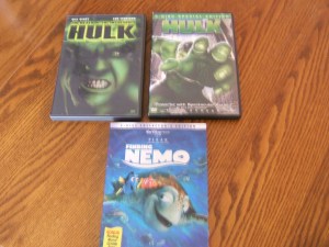 I picked up three dvds and two sweet little storybooks. Three pieces of fabric with palm trees, dragon flies and pink flowers. I thought my daughter would love these designs which reminded me of her favorite, Lily Pulitzer. If not, I see some napkins and table coverings in their future.
