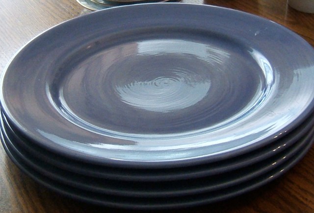 While I was looking for these adorable dishes, I ran across some pretty blue plates, really chargers, made by Land’s End. I got a set of four for $4.75.