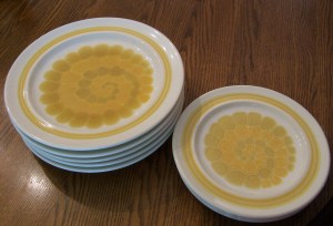 The Franciscan dishes are called Sundance. I still have a full set for 12 and love them! So very 70’s and so very cheerful.