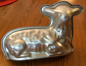 My husband has fond memories of lamb-shaped cakes his grandmother made at Easter when he was a child. This little cake pan was certainly worth every bit of the dollar I paid just to bring that sweet memory back and a smile to my husband’s face.