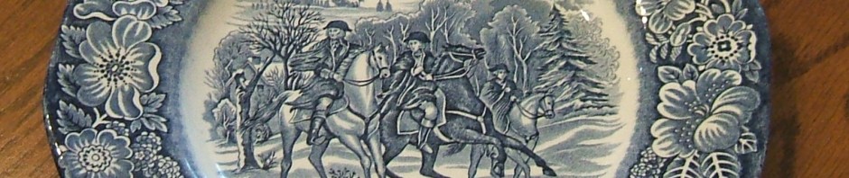The plate is from Liberty Blue, part of their Historic Colonial Scenes series. This scene is Washington at Valley Forge.
