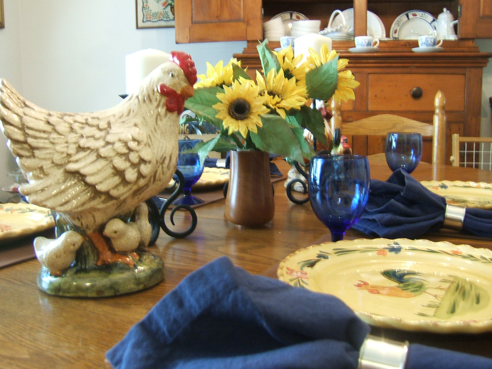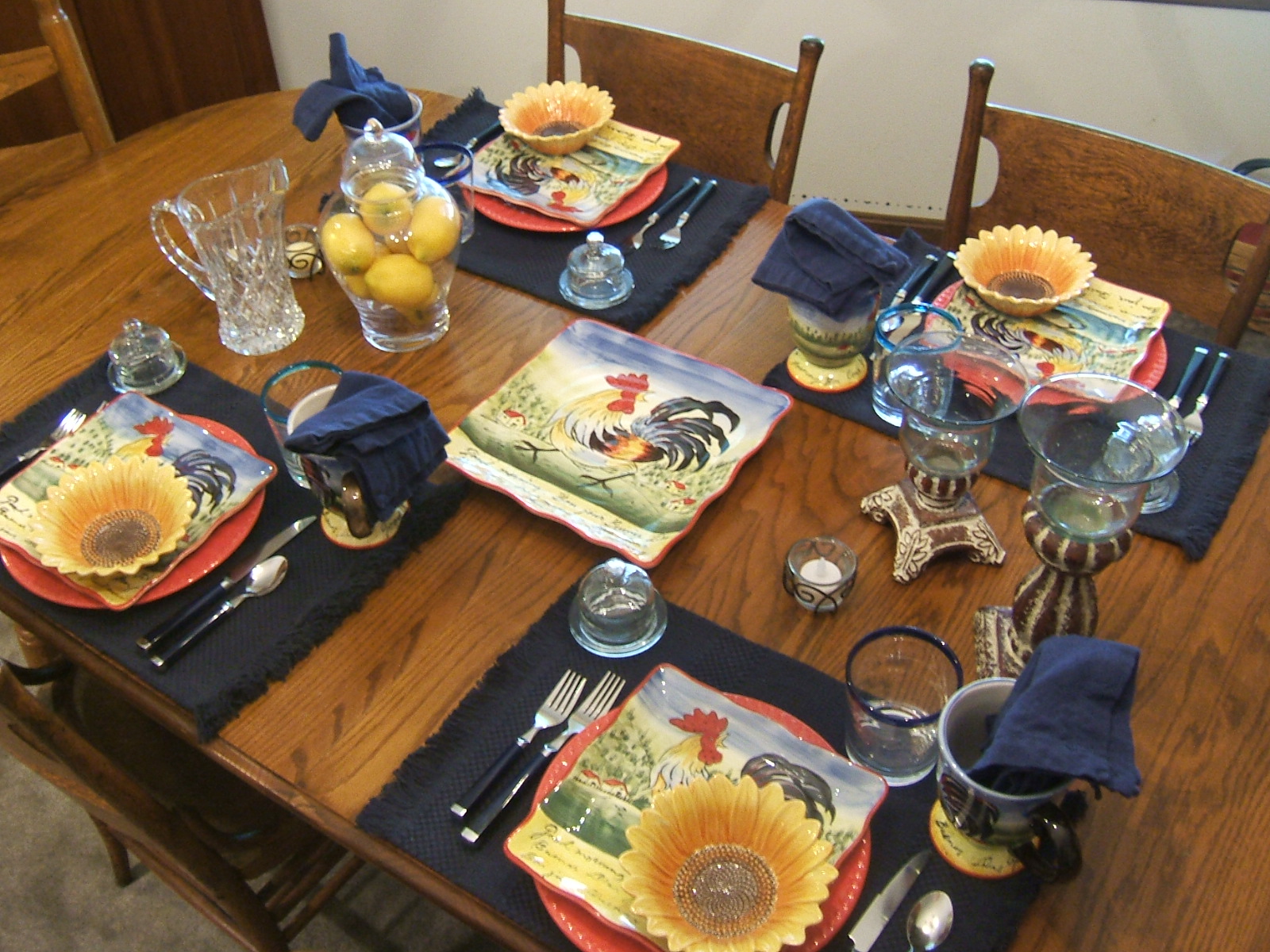 11. A gorgeous table — don’t know what it is about roosters and sunflowers but they sure GO 🙂