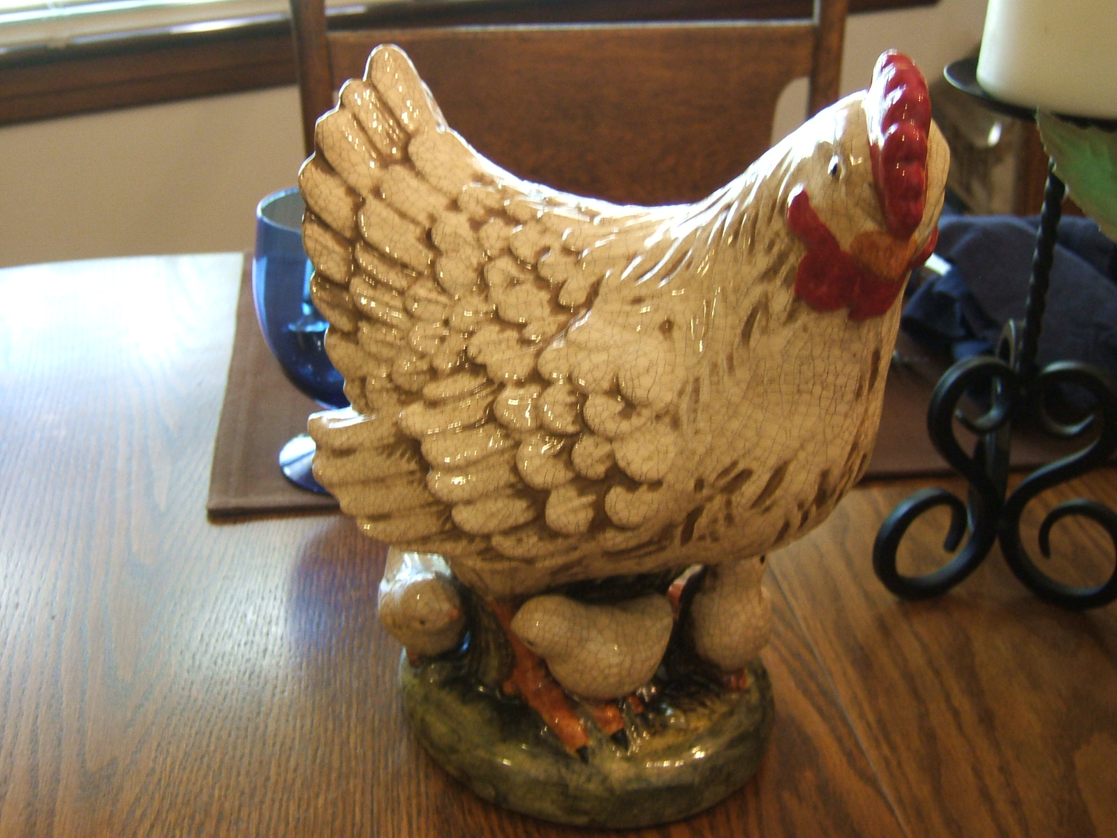 Thanks for visiting my blog. Glad to find you! Love your rooster dishes. The blue and yellow combo is so pretty. I love it, but the square ones, with the cute message and pop of red are FAB! I can see why you couldn’t pass up mother hen and chicks. The cart rooster was a great find too!