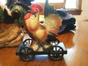 And here is a closer look at the mobile rooster. I was fortunate to find him for a song at a yard sale.