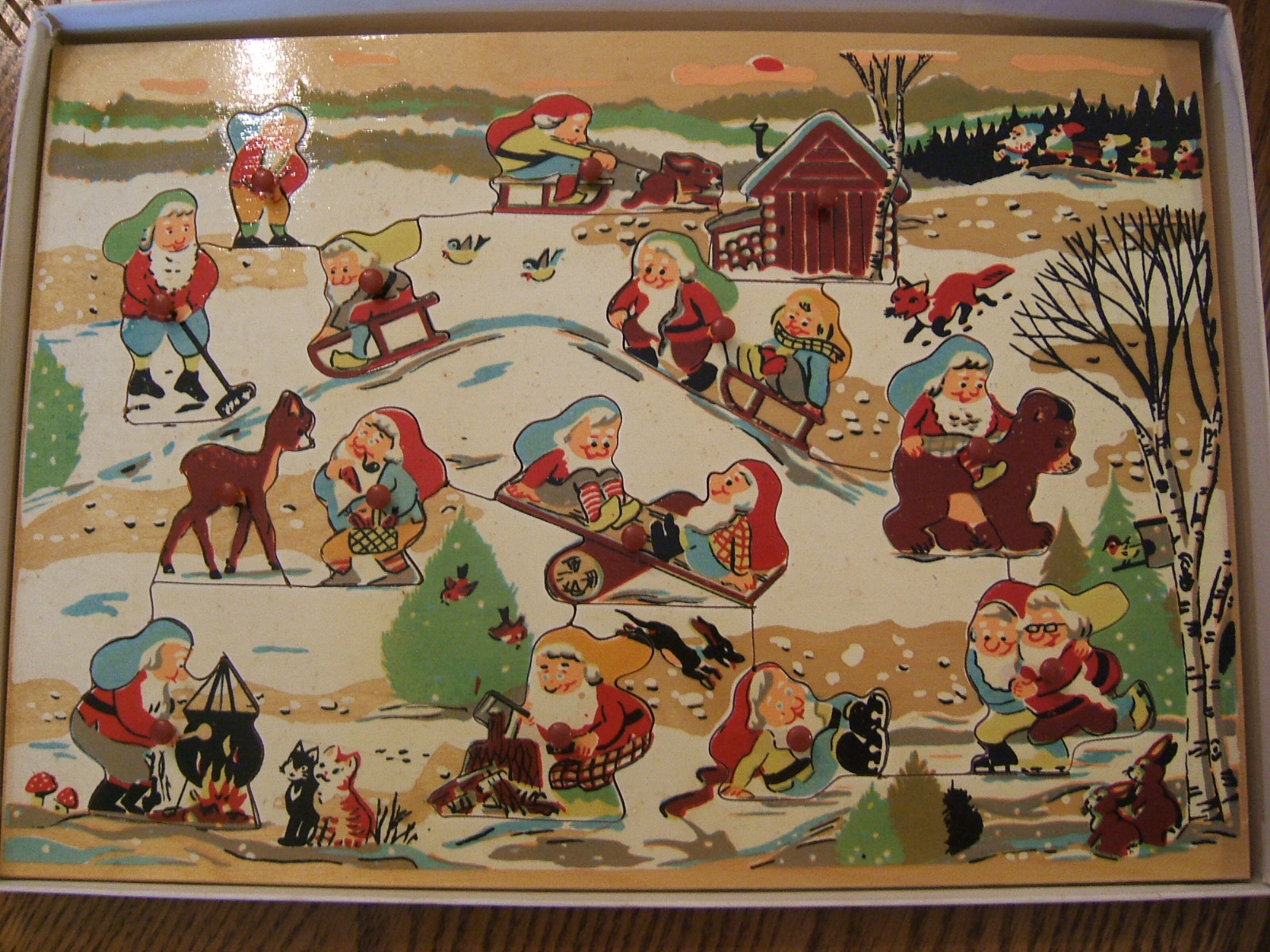 I loved this little wooden puzzle of Dwarfs made in Holland. Something about the illustration made me decide to pay $3 for this.