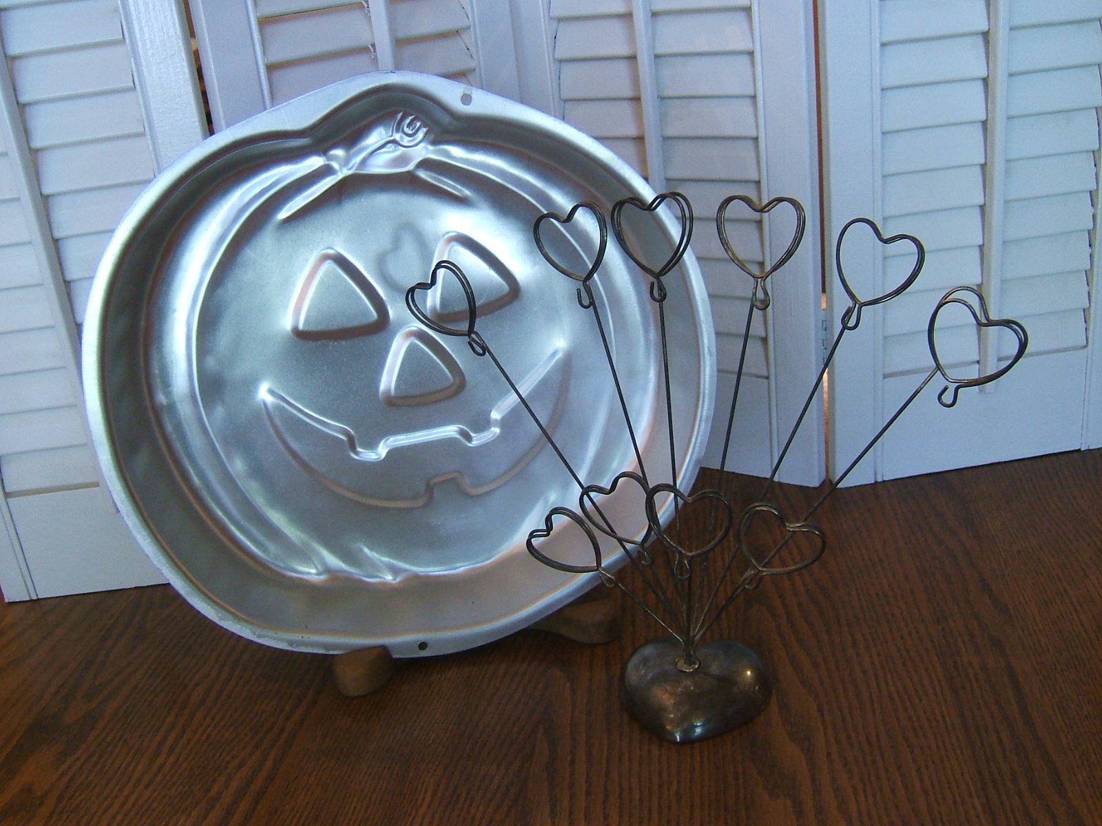 A sale advertised as “huge” turned out to be not so huge. I did find a Wilton pumpkin cake pan for my Halloween lovin’ daughter and a heart picture/note holder.