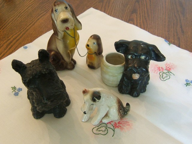 I love dogs. Recent thrifting and yard sale adventures have provided me with a few new additions to my growing collection.
