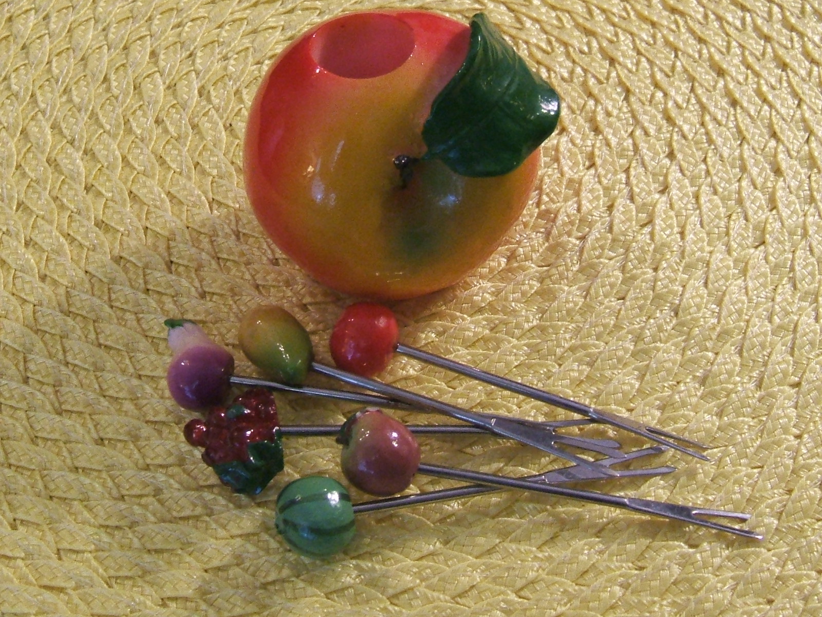 OMG! What great finds. I love the “Bakelite” fruit pick thingy. Amazing finds! Nice job!