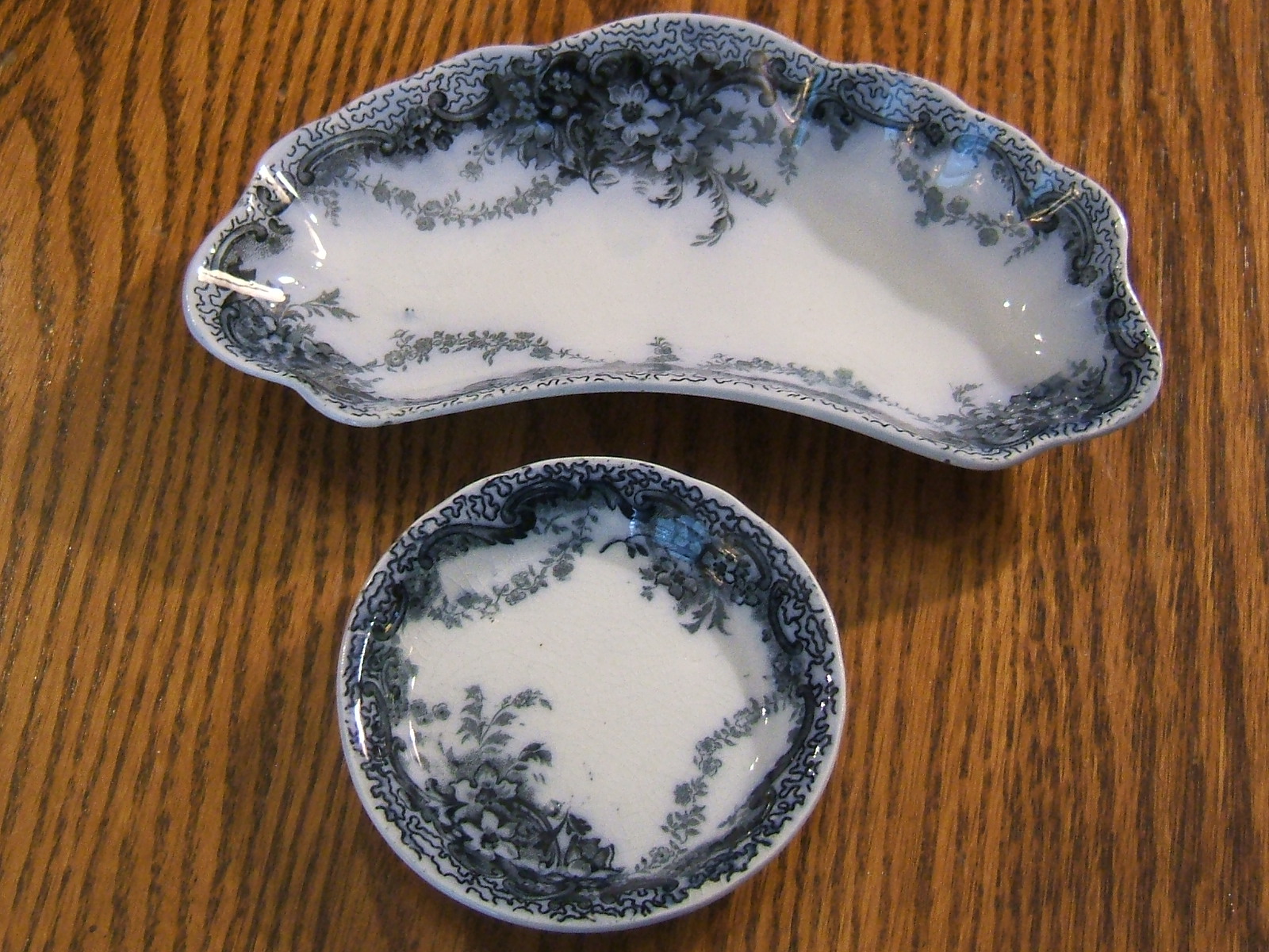This Alfred Meakin set is so pretty; I really like the dark blue/black colors in these pieces. Anyone know the pattern? Is this what is called a dresser set?