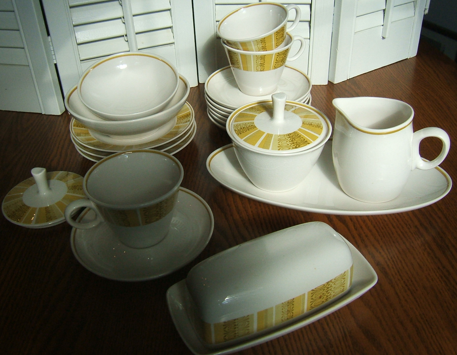 I spied this set on my first walk around the dish area. When we were almost ready to call it a morning, I went back to see if they were still around. Yes! I hastily picked up the box and proceeded to the check out.