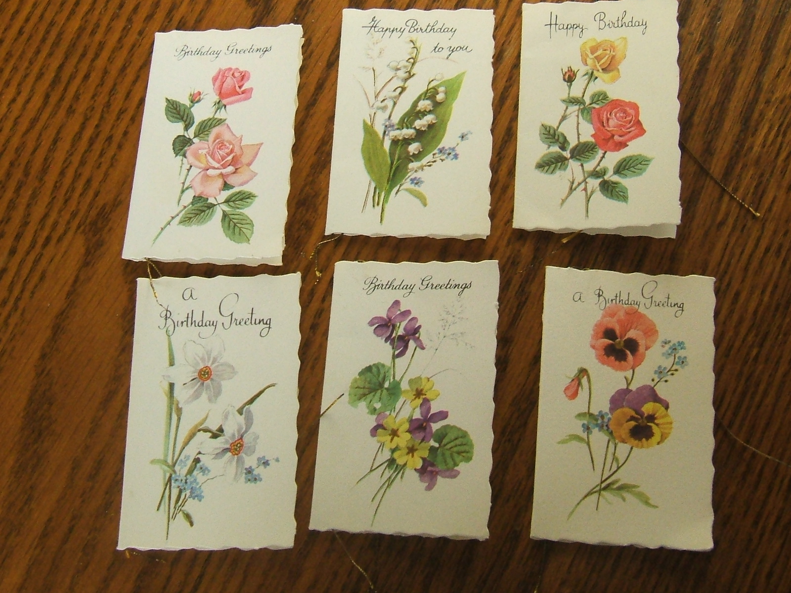 In the “antique” section I came upon an envelope stuffed with vintage cards. The moisture caused some of the gummy flaps to stick, but I managed to salvage most of the cards. These tiny birthday greetings were part of the grouping.