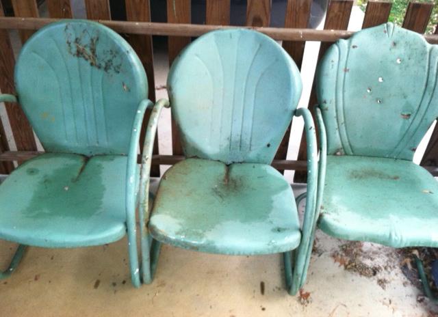 It seems that thrifting can sometime run in cycles. Often times you find similar items for several weeks in a row. This week was one of those weeks. I wasn’t really looking for additional outdoor seating, but when I saw these metal chairs at my neighbor’s curb, I couldn’t get them out of my mind.