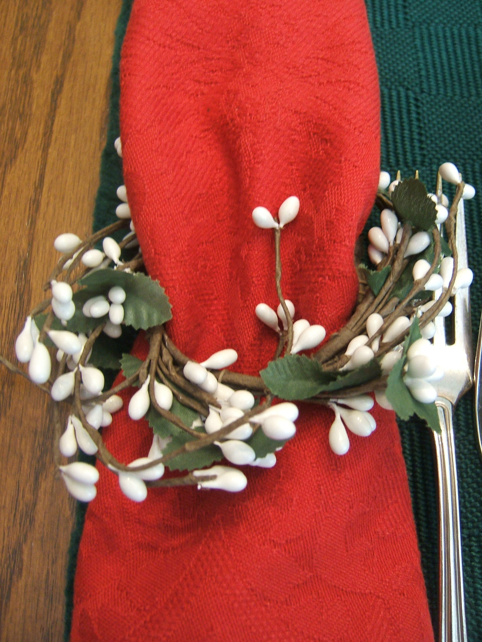 I’ve used red napkins which I have had for ages (although I don’t think they qualify as vintage just yet) and the napkin rings my friend “S” gifted me with after one of our thrifting adventures.