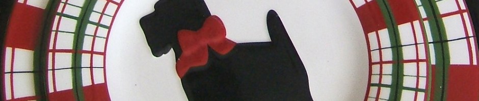 For several years I’ve received as gifts various pieces from the Skating Scotties pattern by Global Design Connections by Kate Williams. When I saw the salad plates this year at Home Goods, I scooped them right up. Then my daughter found the dinner plates at her Home Goods and a tablescape was born.