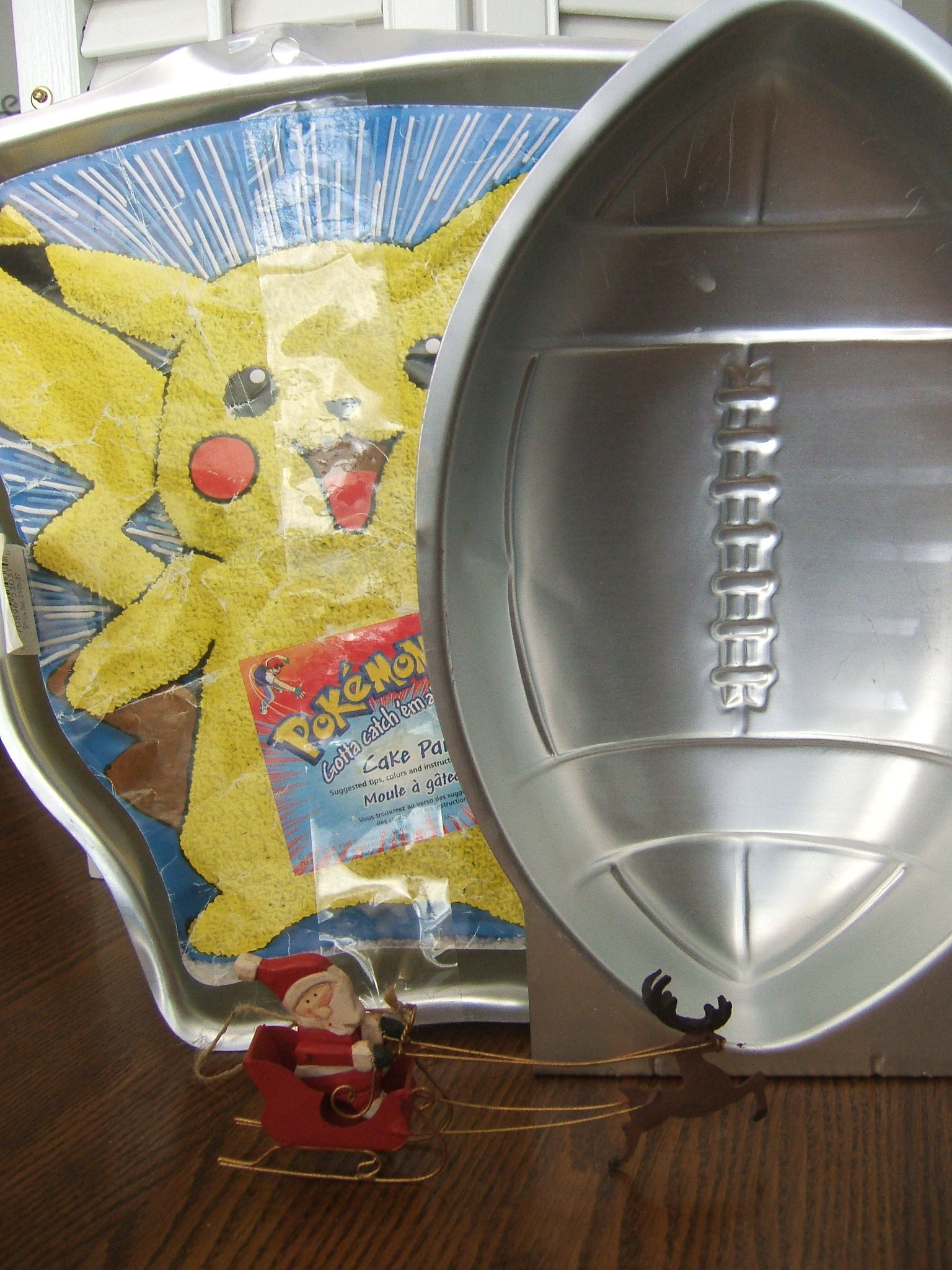 So here I have a Pokeman pan and a football shaped pan. I really do hope I can find the time to list some of my Wilton cake pan collection on Ebay. If I sell some of what I have collected, then I won’t feel so guilty picking up the next priced-just-right pan. Right?