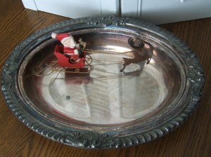 you got some great stuff! That little Santa and raindeer is adorable! The silver dish and the cake pans are cool. I don’t know if you can ever have to many of what you love!