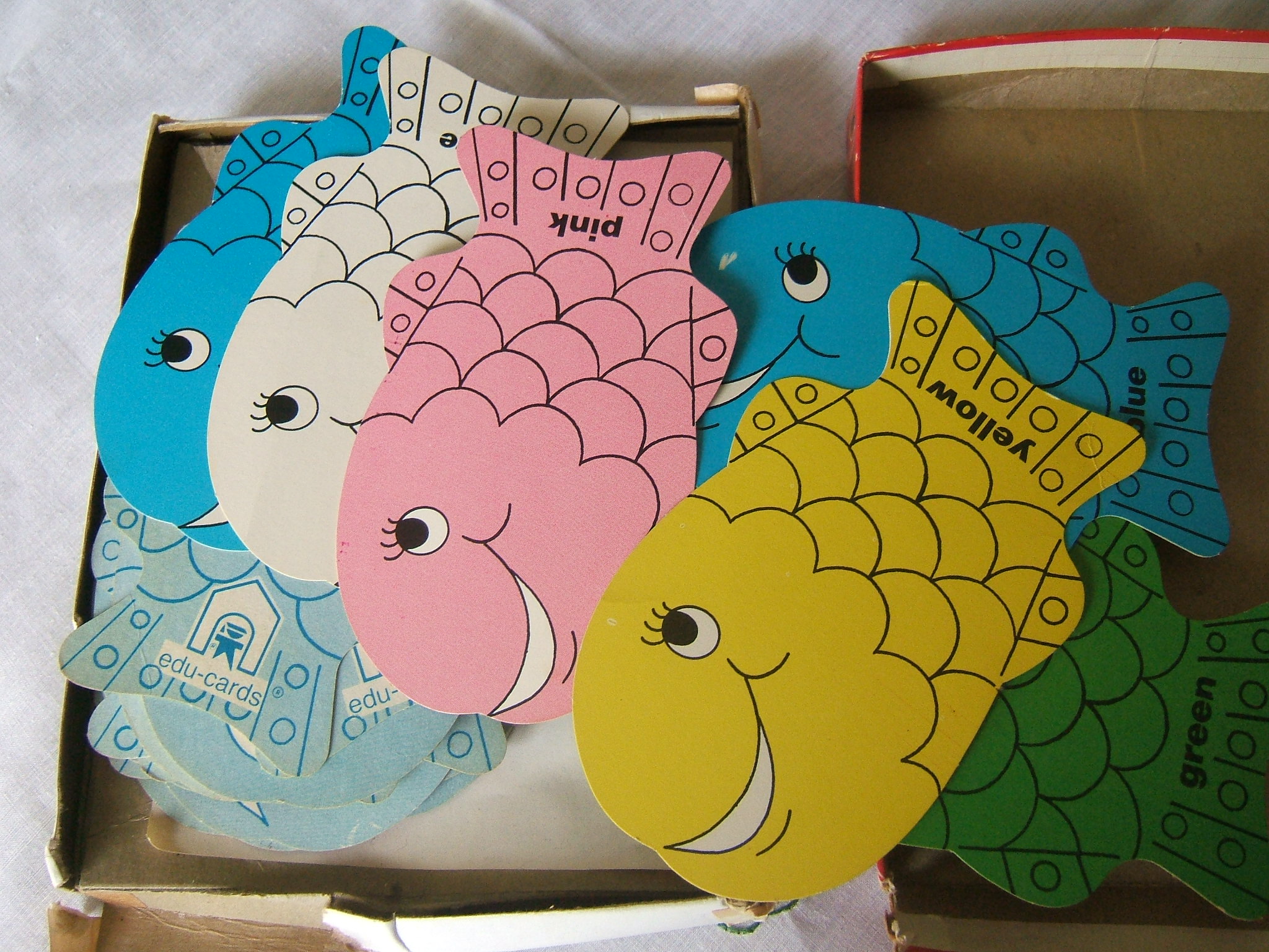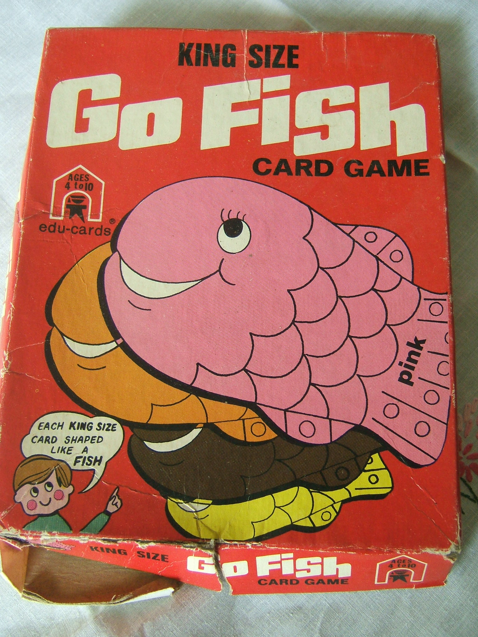 I have played Go Fish many times in my life, but never with giant sized fish shaped cards as found in this vintage game.