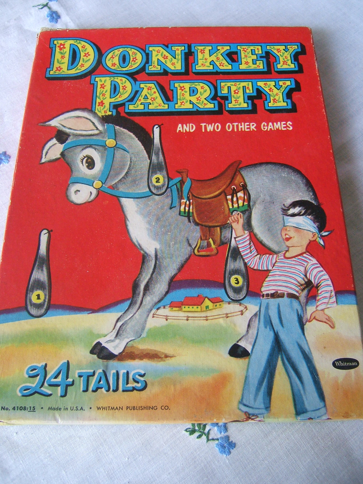 I also found a pristine Donkey Party set, complete with directions for playing two additional games beyond pinning the tail on the donkey.