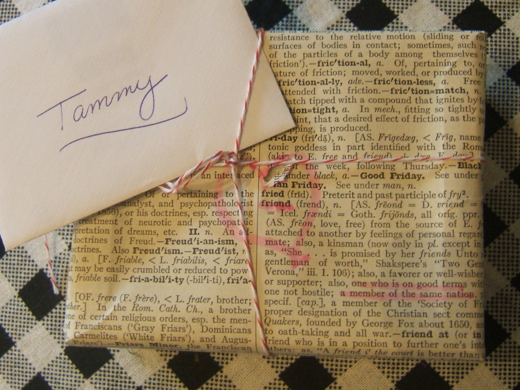 Can you see how precious this is? A page from a dictionary with the word “friend” highlighted. See that sweet heart?