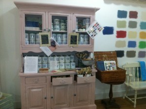 Here you can see one of the ASCP cupboards and part of the ASCP paint sample wall. The Empty Nest will also be carrying Miss Mustard Seed’s new line of milk paints.