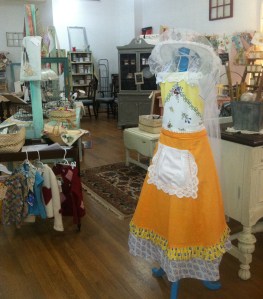 Once inside, the shop is just adorable and filled with the things we all love. Dishes (!), gorgeous painted furniture, aprons, sweet hand-crafted children’s sweaters, cloches, wooden rulers, crystal, tea cups, prints, and, oh yeah, Annie Sloan Chalk Paint, and much, much more. If you are looking for a gift for yourself or a friend, this is the place to come. Eye candy galore! Take a gander.