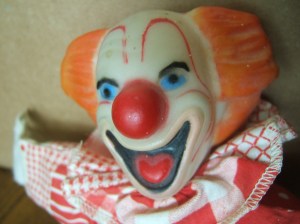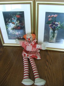 He is a Bozo puppet produced as a promotional item by Capitol Records in the 1940’s. Of course, we didn’t know this when I was bidding. We just liked him.