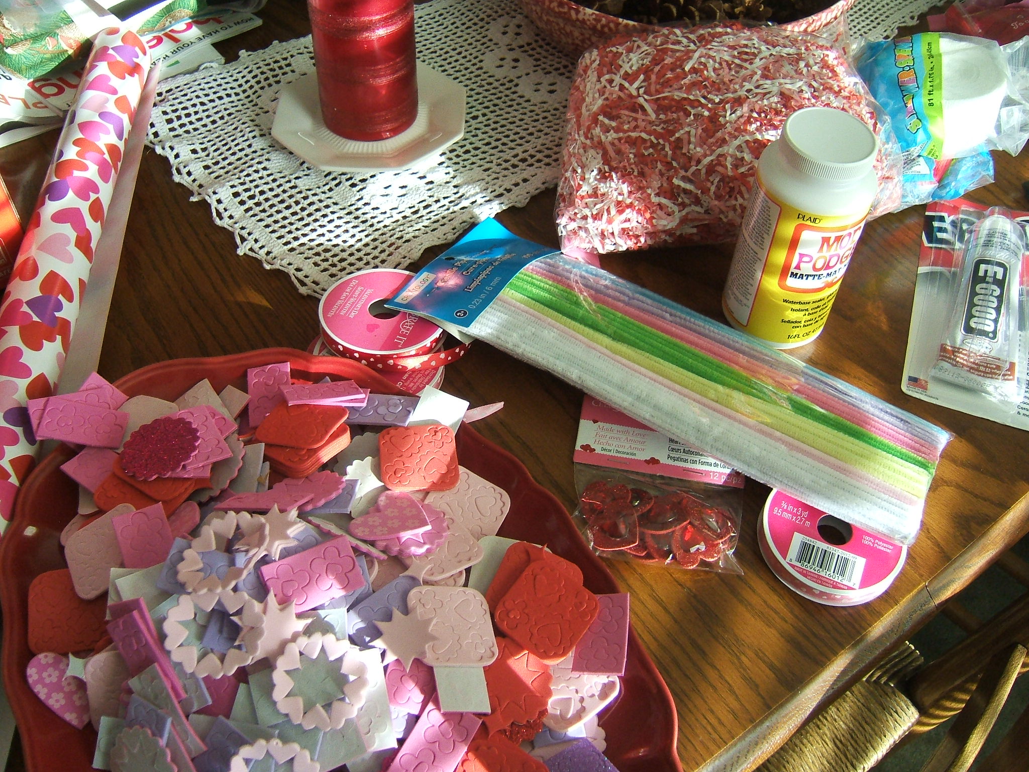 I created some little Valentines inspired by a pin on Pinterest. My dining room table looked like Cupid exploded.