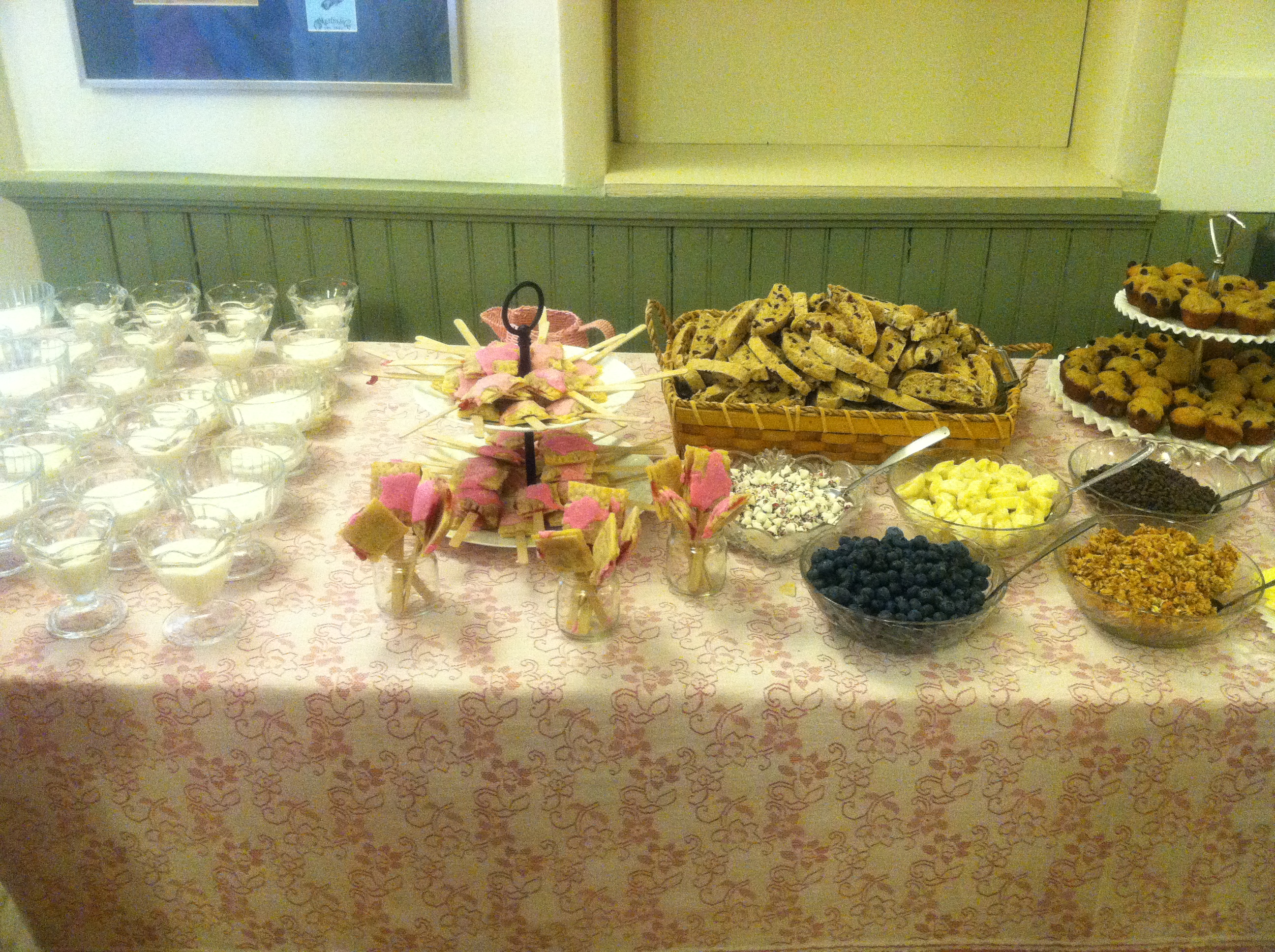 A fine selection of tea was provided at each table. The teapots are not shown as they were warming in the kitchen awaiting their turn at the table.